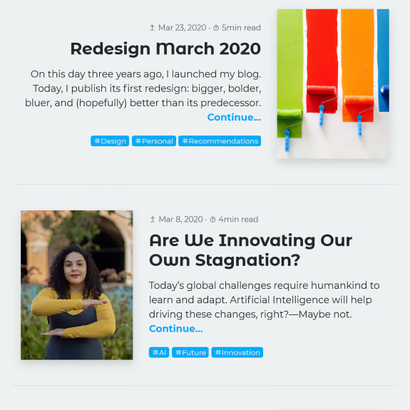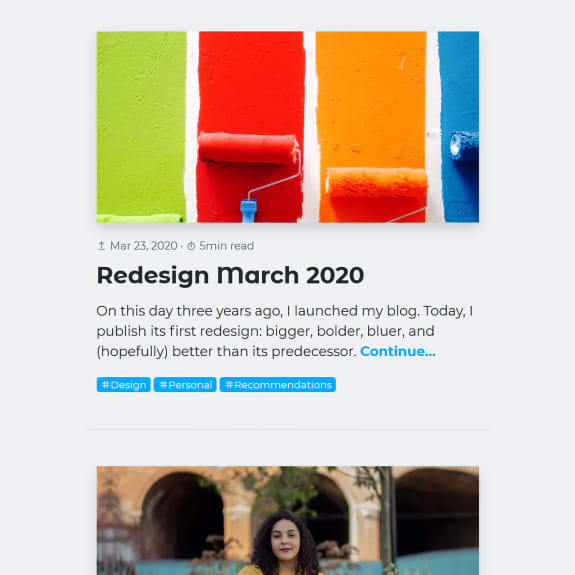 Redesigning a blog after, what … 14 articles already? I know! I should be more focused on writing and less on tooling. But hey, I can’t deny that I’m a techie and hobbyist designer after all—so here we go: